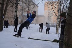 Однако погода в этом году внесла свои коррективы. Из-за низкой температуры воздуха пришлось проводить на снегу только самые зрелищные станции: