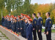 В этом году, как всегда на площади перед Петровским дворцом было многолюдно. Дети, участники кружков, секций и объединений дворца творчества, их родители, юноармейцы и наши курсанты.