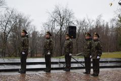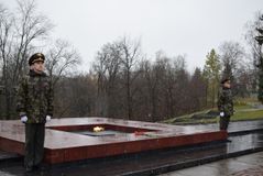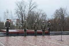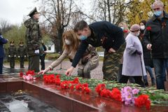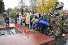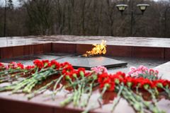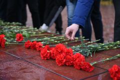 После этого ведущая прочитала еще одно стихотворение под музыкальную композицию с медленным ритмом, и началась минута молчания, после которой жители Петрозаводска возложили цветы к Вечному огню в дань уважения погибшим воинам Красной армии.