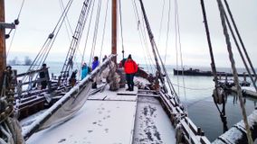 Ребята познакомились с историей деятельности Морского Клуба "Полярный Одиссей", с процессом строительства деревянных кораблей, с процессом обслуживания и ремонтом шхун в зимнее время.