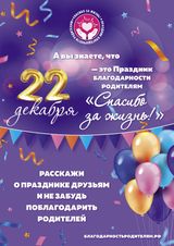 Создание особенной культуры отношения детей к родителям является формированием новой российской традиции, которая со временем может перерасти в международный день благодарности родителям «Спасибо за жизнь!».