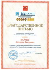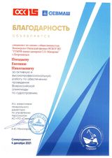 По итогам, сертификаты за участие нашим курсантам прислали сразу после проведения, а к Новому году, АО «ПО Севмаш» прислал благодарности коллективу филиала и директору А. В. Васильеву и специалисту по связям с общественностью филиала Е. Н. Погадаеву.