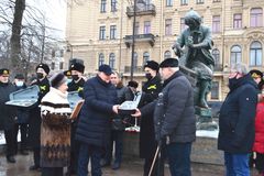 26 января на набережной Невы, перед Адмиралтейством у памятника Петру I «Царь-плотник» традиционно собралась морская общественность и обучающиеся морских учебных заведений Санкт-Петербурга. В этот день город отмечает годовщину вручения российскому императору Петру I патента корабельного плотника.