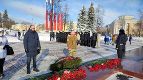 Жители Петрозаводска принесли цветы к Вечному огню и почтили минутой молчания память бойцов, погибших за Отечество.