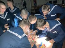Команды прошли по 8 станциям «Отгадайка», «Плюс пять», «Равновесие», «Убери лишнее», «Что, где, когда?», «Точно в цель», «Шпаргалка» и «Деловые жуки», зарабатывая на этих станциях ключи. Игра проводилась в темноте, для подсветки и поиска информации участники могли использовать мобильные телефоны. В финальной части игроки должны были разгадать морской термин ФЕРТОИНГ и объяснить его значение. Все участники справились с заданием. Первое место заняла команда группы 312. Спасибо за работу преподавателям и их помощникам на станциях. Успеха всем участникам!