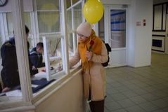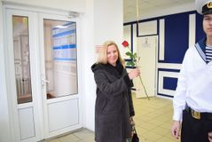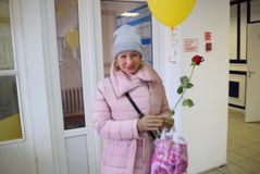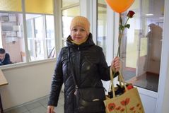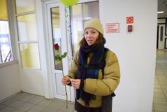 Всем женщинам вручили цветы и воздушные шары. До начала занятий в фойе играла веселая музыка.
