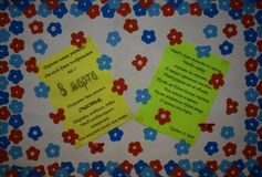 На первом этаже — парад плакатов к 8 марта от 511 и 512 учебных групп.