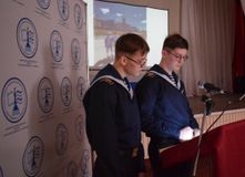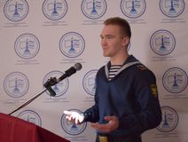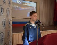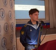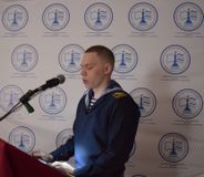 Курсант 542 учебной группы Смирнов Илья, с презентацией, рассказал историю прохождения плавательной практики на теплоходе Севастополь.