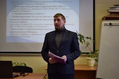 Докладчик Рудь С. А., преподаватель-организатор ОБЖ филиала рассказал о действиях преподавателей, сотрудников и личного состава филиала в случае аварии на предприятиях г. Петрозаводска и выброса в атмосферу аммиака или хлора.