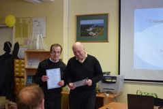 Перед началом работы, директор филиала А. В. Васильев поздравил преподавателя Лехто Геннадия Федоровича с предстоящим юбилеем и вручил благодарность за добросовестный труд, творческий подход в работе с курсантами и в связи с 65-летием.
