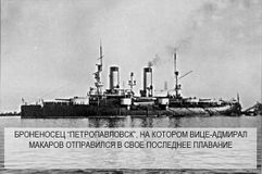 Главной же целью Макарова было принудить японского адмирала Того к генеральному сражению на море. К сожалению, замыслы нового командующего Тихоокеанской эскадрой не были осуществлены…Важную роль в ходе русско-японской войны играла т.н. «минная война», в которой японцы действовали удачнее. Их минные позиции носили наступательный характер, что существенно затрудняло выход русской эскадры в море. 13 апреля (31 марта) 1904 года корабли Тихоокеанской эскадры совершали вполне рядовой выход в море. На броненосце «Петропавловск», на котором находился Макаров, приступали к обеду, для чего весь штаб вице-адмирала собрался на мостике. Внезапно, с интервалом в две секунды, прогремели два сильнейших взрыва, в результате чего броненосец наклонился на бок и всего за 1,5 минуты ушел ко дну — в числе погибших оказался и вице-адмирал Макаров. Японское командование не скрывало своего удовлетворения от произошедшего, что вполне объяснимо, поскольку с гибелью Макарова русская эскадра практически прекратила активные действия и отказалась от идеи установления контроля над морем.