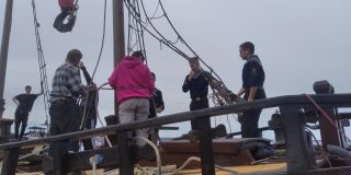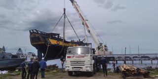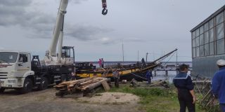 Бригантина "Полярный Одиссей" спущена на воду после сезонного обслуживания.