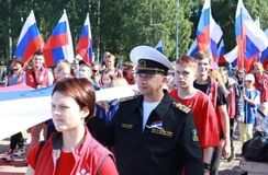 Карелия тоже присоединилась. Сегодня петрозаводчане торжественно пронесли по набережной Онежского озера 30-метровый российский триколор. Курсанты и сотрудники Филиала приняли участие в Торжественном шествии