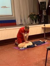 Разобрали, что делать с человеком без сознания, когда он дышит и когда не дышит - учились помещать пострадавшего в восстановительное положение, проводить сердечно-лёгочную реанимацию на специальных манекенах.
