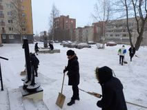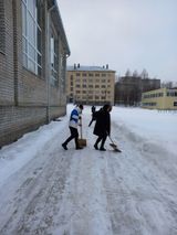 Курсанты, проживающие в городе, вышли на мероприятие по наведению порядка на территории Филиала. Курсанты расчистили от снега подъездные пути доставки продуктов до камбуза и вывоза мусора, почистили дорожки внутренней территории и площадку перед учебным корпусом. А также посыпали песком обледенелые участки дорог.