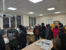 Далее все прошли на экскурсию по филиалу. Посетили Учебно-тренажерный центр, в экипаже ознакомились с бытом курсантов. А курсанты 1 курса продемонстрировали виды форменной одежды курсантского состава филиала.
