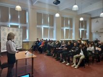 В актовом зале перед гостями выступил начальник отдела воспитательной работы Власов Юрий Александрович и заведующая отделением Федотова Оксана Александровна. Ребятам рассказали о филиале, особенностях обучения, о жизни вне учебы, патриотическом воспитании и распорядке дня для проживающих в экипаже, а также