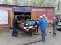 17 мая Ботик Петра I (реплика) «вышел» из ангара верфи Морского клуба «Полярный Одиссей», где был построен для Центра гражданско-патриотического воспитания "Каравелла" города Екатеринбурга.