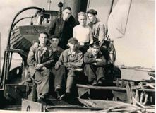 (Фотографии сделаны в конце пятидесятых годов. На фото буксир " Чудово " и его команда. Прадед Егора в фуражке, сидит).