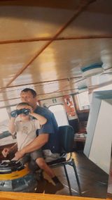 АО «Северо-Западный флот». С 2015 года работает боцманом в АО «ЛСР». На фото Егор на работе с папой постегает азы профессии.