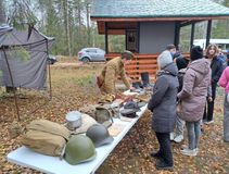 Участники мероприятия возложили цветы к памятным обелискам. Все желающие смогли познакомиться с интерактивной выставкой предметов солдатского быта периода Великой Отечественной войны, которую представил музейно-выставочный комплекс «Полет» (г. Петрозаводск), а также угоститься солдатской кашей, горячим чаем с выпечкой.