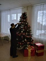 В холлах учебного корпуса и экипажа установили и нарядили Новогодние ёлки, подготовили фото зону.