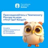 Российское общество "Знание" проводит официальный Чемпионат России по игре "Что? Где? Когда?" среди школьников и студентов колледжей 2023-2024 в партнерстве с телекомпанией Игра-ТВ - правообладателем бренда "Что? Где? Когда?".