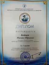 Дипломом за 3 место и подарком награжден Бойцев Михаил, в номинации «Арктика далекая и близкая»;