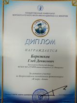 Дипломом участника награжден курсант Бережков Глеб;