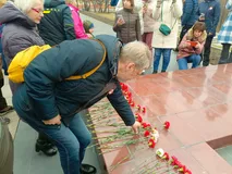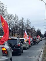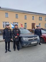 Автопробег «Победим вместе» начался с церемонии возложения цветов у мемориального комплекса «Братская могила и могила Неизвестного солдата с Вечным огнём Славы». Далее автоколонна от площади Ленина направилась к памятному месту "Курган славы" в селе Святозеро.