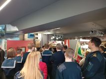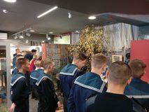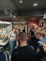 Курсанты впервые посетили Центр, познакомились с военной историей Карелии прошлого и настоящего, и очень впечатлились его коллекцией, которая насчитывает более 7 тысяч различных экспонатов, связанных с военным прошлым нашего края. Также будущие моряки отметили, что тематические объемные инсталляции очень помогают усвоению материала, который рассказывает экскурсовод.