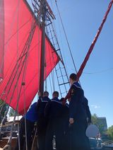 В преддверье Дня города в Морском клубе «Полярный Одиссей» проходят завершающие занятия и тренировки с курсантами Беломорско-Онежского филиала ФГБОУ ВО «ГУМРФ имени адмирала С.О. Макарова» на бригантине «Полярный Одиссей» под Алыми парусами. В ходе проведения занятий, курсанты продолжают изучать парусное вооружение бригантины, стоячий и бегучий такелаж. Ребята оттачивают свои навыки в работе с парусами и управлением судна под парусом.