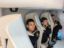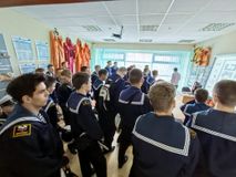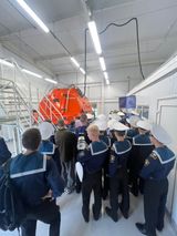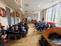 Обучающиеся познакомились со специализированными учебными кабинетами, побывали на тренажере по борьбе с пожаром и каждый из участников экскурсии имел возможность посетить тренажер «Шлюпка свободного падения».