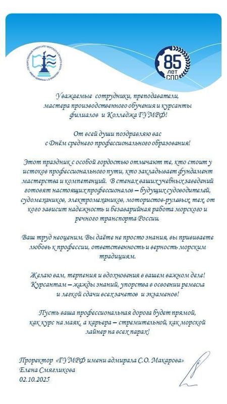 Поздравление от Проректора "ГУМРФ имени адмирала С.О. Макарова"